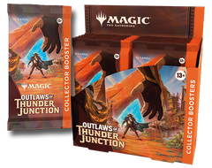 Outlaws of Thunder Junction Collector Booster Packs are ready to fill your binder with rares, foils, alternate art, special card styles, and more. Collector Boosters are the only Outlaws of Thunder Junction boosters that contain cards with extended art.