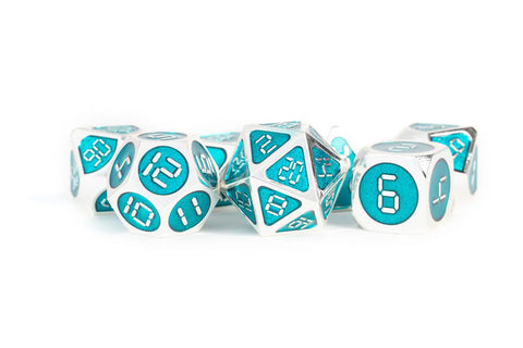 FANROLL METALLIC DICE: Silver with Teal Enamel Digital 16mm Polyhedral Dice Set