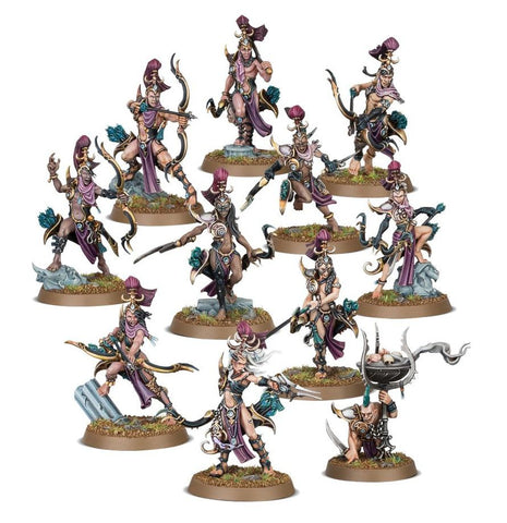 The Blissbarb Archers dance around the battlefield, loosing volleys of deadly arrows. One model may be assembled as a High Tempter while the kit also includes a Blissbrew Homonculus, who can add even more potent toxins to your ranged attacks.