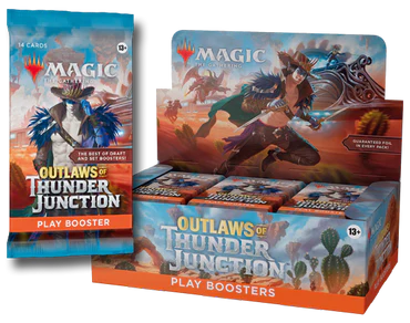 Each factory-sealed display box contains 36 Outlaws of Thunder Junction Play Booster Packs!